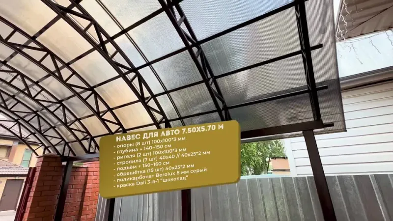 На сайте компании можно подобрать готовый проект или заказать по индивидуальным требованиям. Рекомендуется ознакомиться с примерами работ, сделанных под ключ, в фотогалерее, изучить видеоматериалы. Последние дадут полное представление о процессе изготовления, монтажа навесов из поликарбоната.