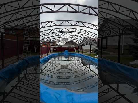 Навес для бассейна 16*8,5 второй день монтажа
