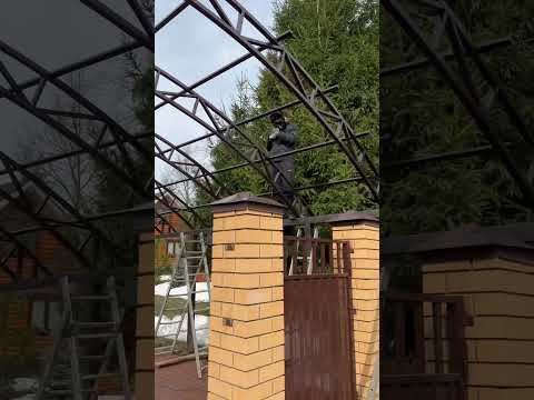 Заканчиваем сборку металической конструкции навеса