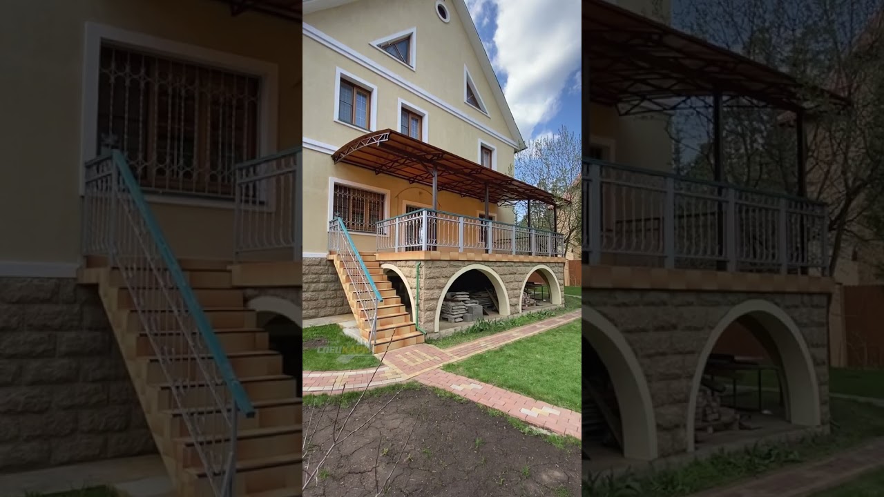 Навес из поликарбоната к дому над балконом 8х4 | Навесы из поликарбоната от Спецкаркас