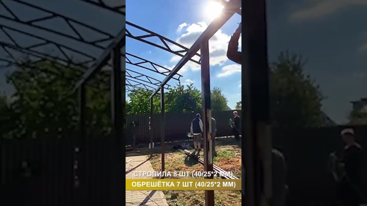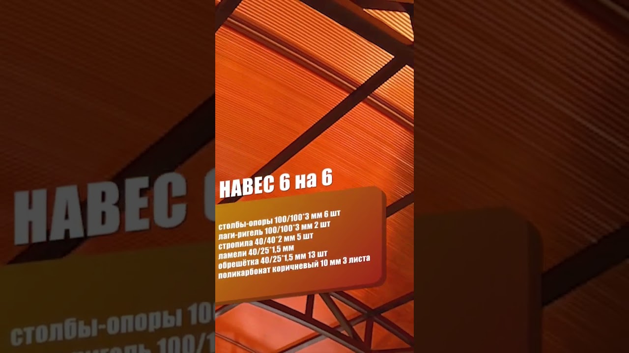 Металлический навес для машины с кровлей из поликарбоната 6*4 | Навесы из поликарбоната Спецкаркас