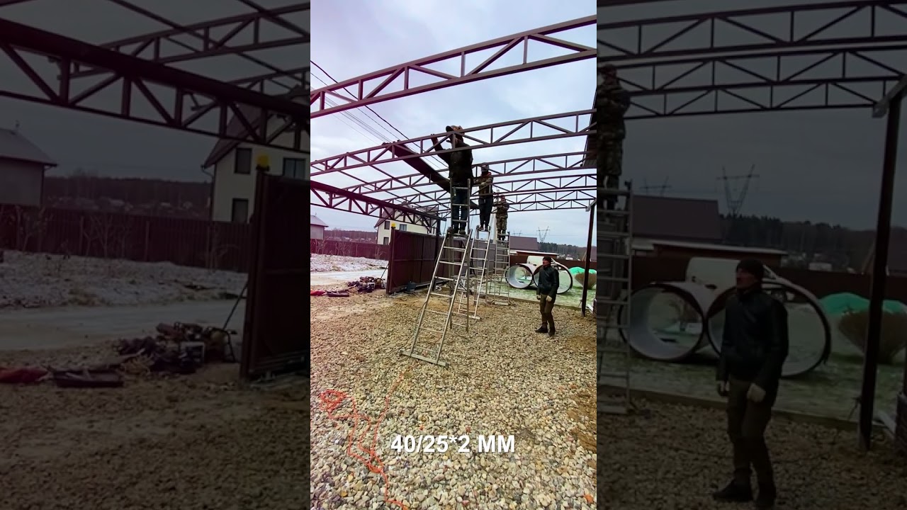 Изготовление комплекта металического навеса к дому для террасы размером 10*5 мастерская Спецкаркас